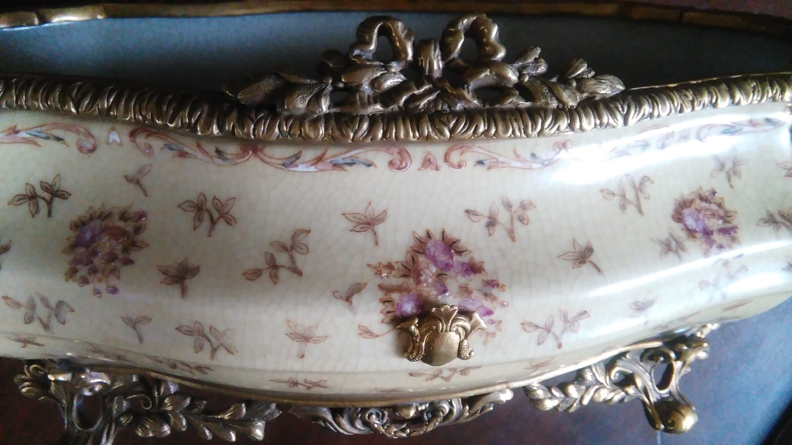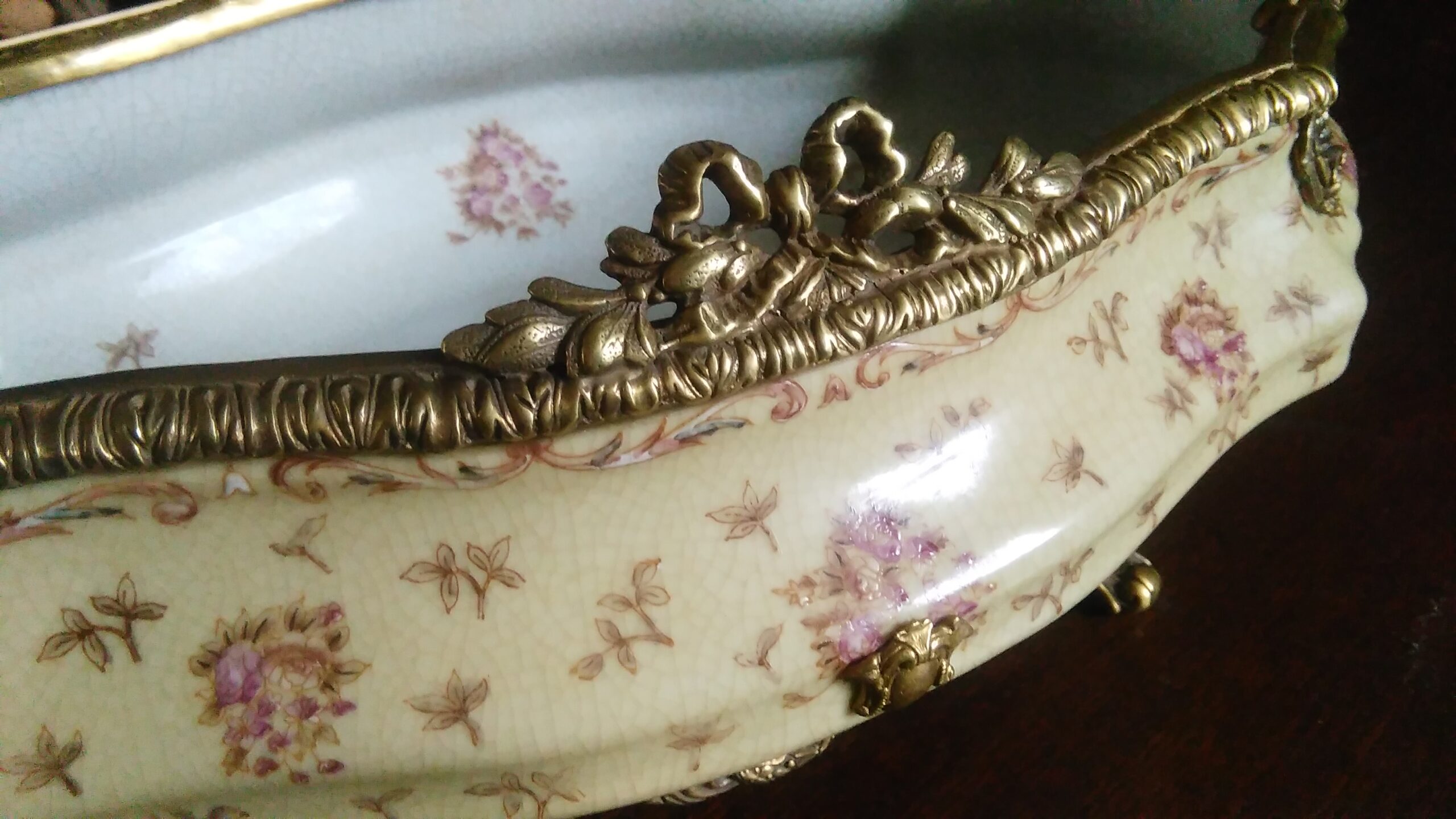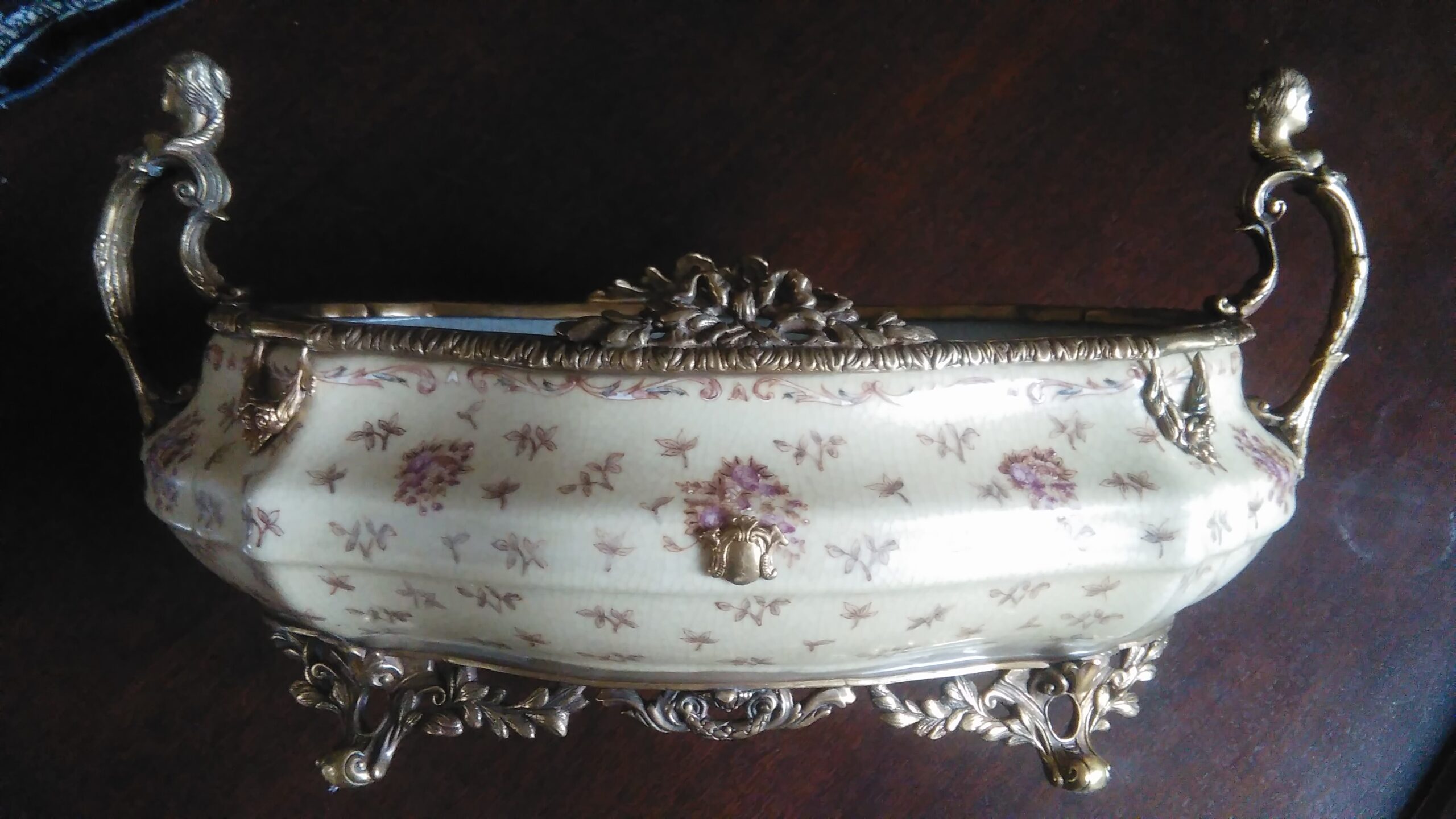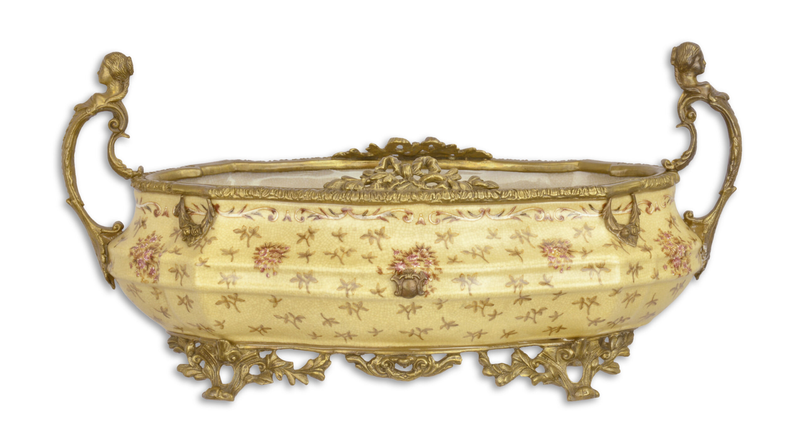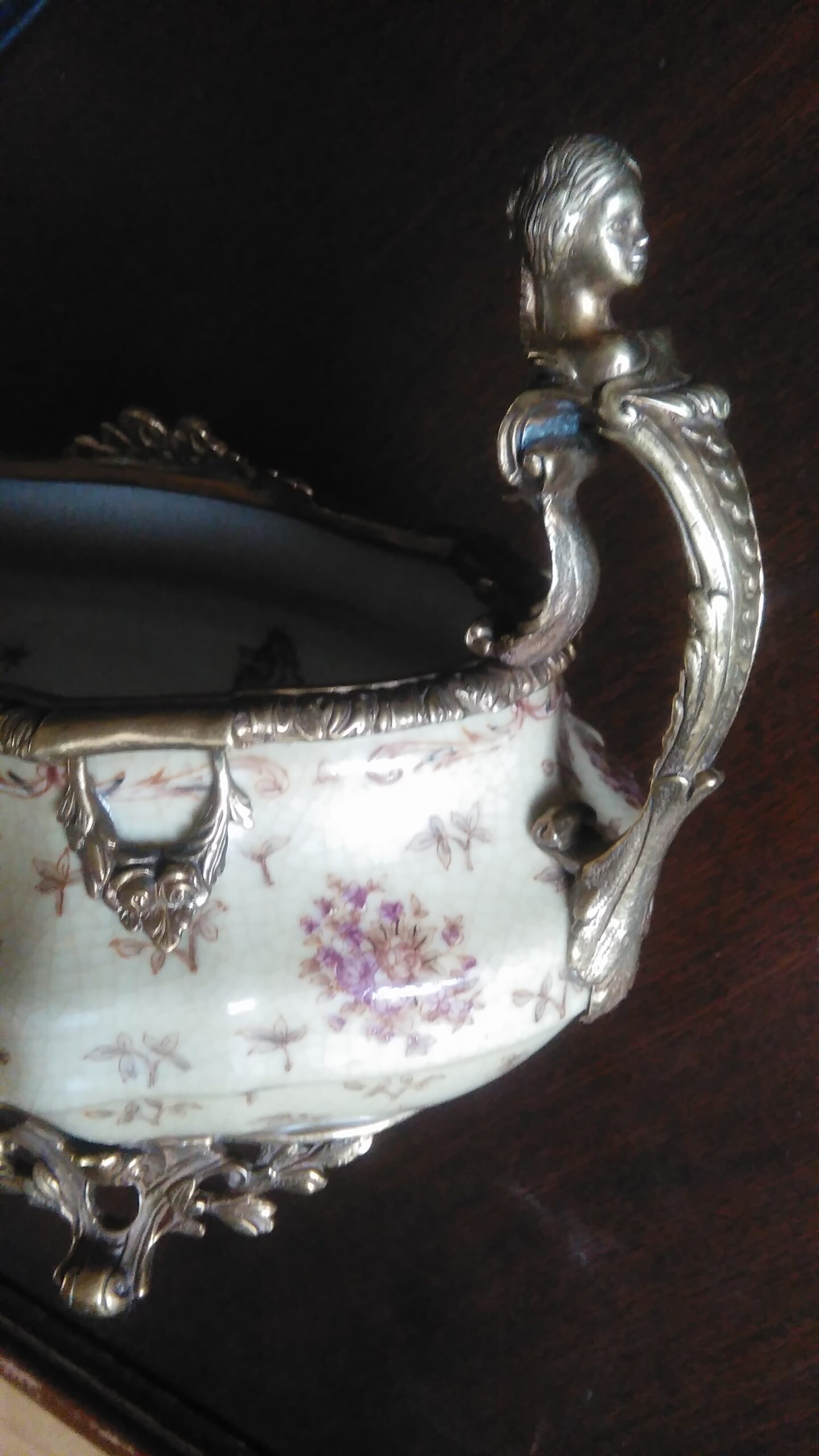 Waza w stylu secesyjnym, wykonana z porcelany, zdobienia z brązu w kształcie syren,